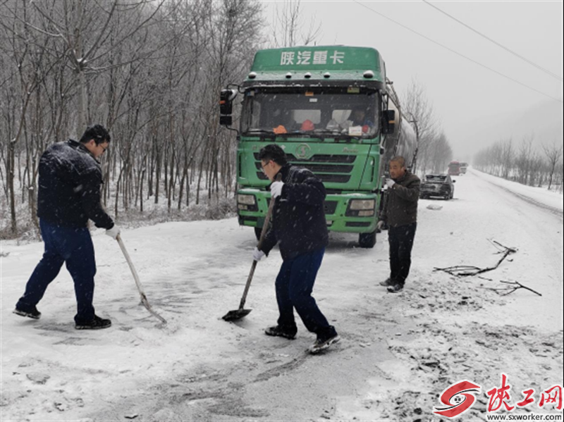 同時,大秦公司積極與交通、路政等部門取得聯系,在說明情況后,爭取了政府相關部門支持,項目各部門職工頂風雪、冒嚴寒進行道路鏟雪、撒鹽等行動。經過幾個小時不間斷作業,雪卻越下越大,無法滿足正常通行條件,車輛依然不具備通行條件,被滯留原地。公司與電廠積極溝通,協調搶險物資供應,支援力量為恢復通行、供暖保電提供了有力支撐。在全體職工連續30多個小時撒鹽、鏟雪等行動的奮戰下,道路恢復了通行,載滿100噸石灰石的物資供應車到達電廠,后續7輛物資供應車也陸續抵達項目現場,保障了物資正常供應,平穩度過了險情。